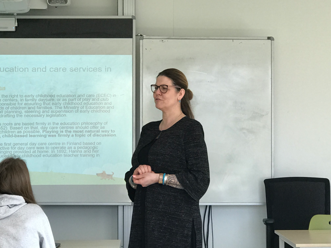 Sanna Puustinen visiting the Netherlands MBO RIJNLAND in Woerden. Sanna Puustinen visiting the Netherlands from 19.2-21.2.2020 MBO RIJNLAND in Woerden. Sanna Puustinen came over from Finland to visit me in Woerden. She received a detailed program from us about the visit. Sanna (Dutch national) has studied to become a childcare practitioner in Finland and wanted to come to the Netherlands to learn about the Dutch daycare system and learn more about the Dutch education “Pedagogisch mederwerker” in the Netherlands. She also hoped to have a chance to talk to teachers and students and learn more about the different sorts of daycare that are available in the Netherlands. On Wednesday the